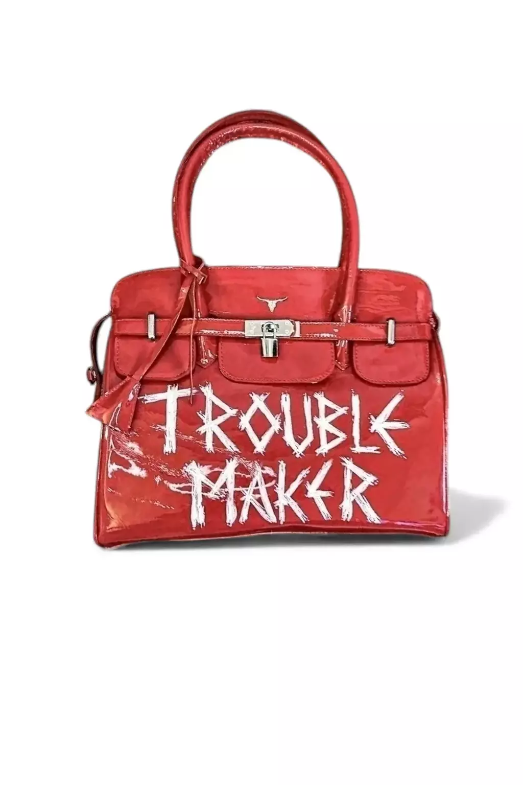 Cartera en cuero de charol con herrajes en baño niquel.